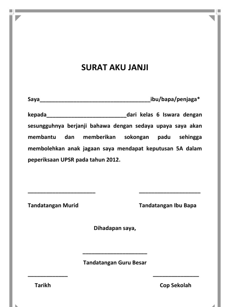Saya sesungguhnya faham bahawa jika saya disabitkan kerana telah melanggar Aku Janji ini saya boleh dikenakan tindakan tatatertib mengikut Peraturan-Peraturan Pegawai Kelakuan dan Tatatertib 1993. Here are a number of highest rated Surat Aku Janji Pekerja pictures upon internet. Contoh Surat Aku Janji Pelajar Cemerlang - Contoh aku janji 1.